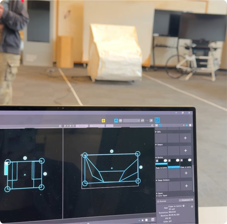 Various animations with different sizes, dynamism, and directionality were tested with users via a paper car prototype with a projector on the inside. The projector mapped our animations on the outside of the car with the help of the program, Madmapper, allowing us to act out a crossing scenarios that included our animated signifiers with users in order to determine which were the most effective.