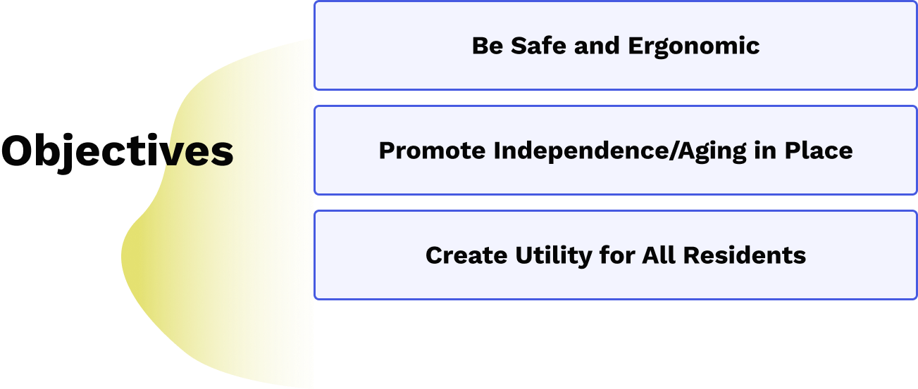 Our main stage is a multi-generational home. Within this household, we can think of the residents in terms of a hierarchy: The primary resident is an aging adult or an individual with disabilities. Secondary residents might be a partner or family member who shares the living space.