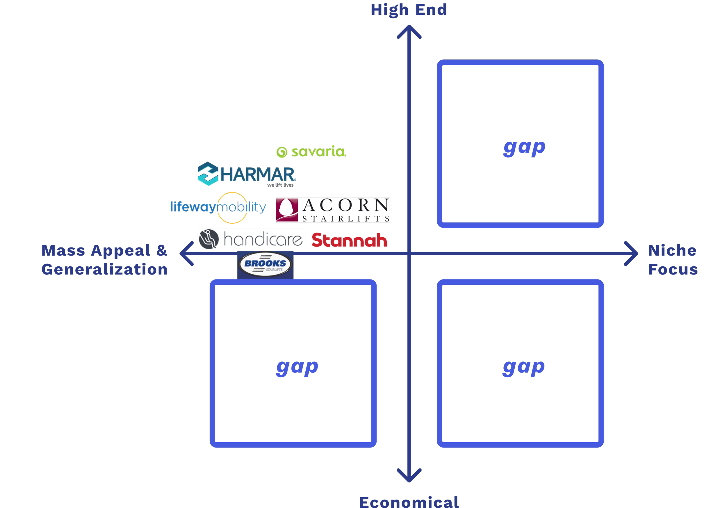 Simultaneously, we conducted a market whitespace analysis to identify where the market gaps were. The market leans toward mass appeal and generalization but prices veer toward being high end. This is without much differentiation in features, indicating an opportunity for disruptive innovation.